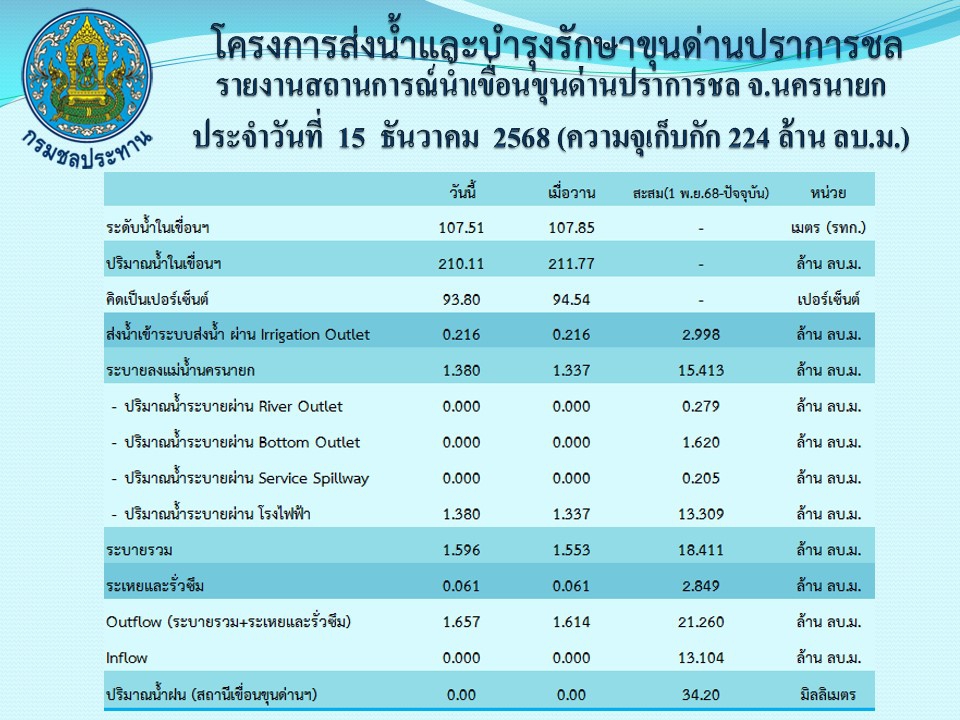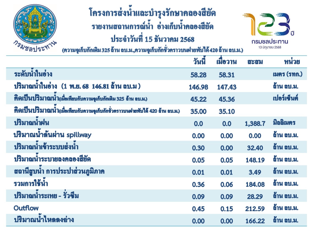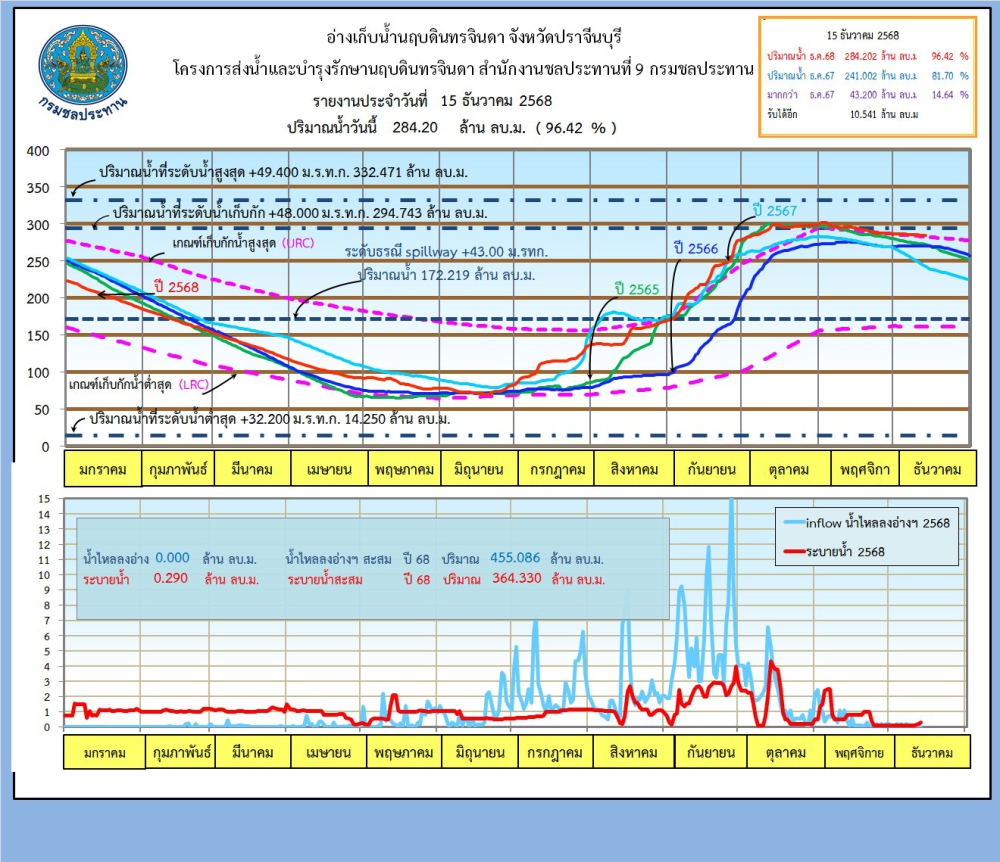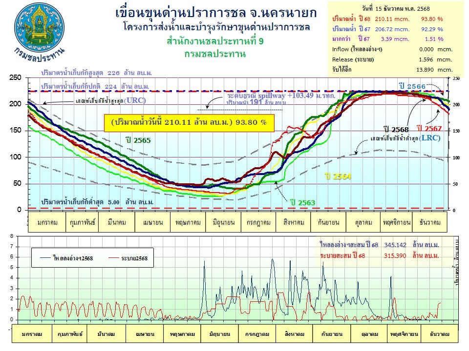 รายงานสถานการณ์น้ำประจำวันที่ 15 ธันวาคม 2568