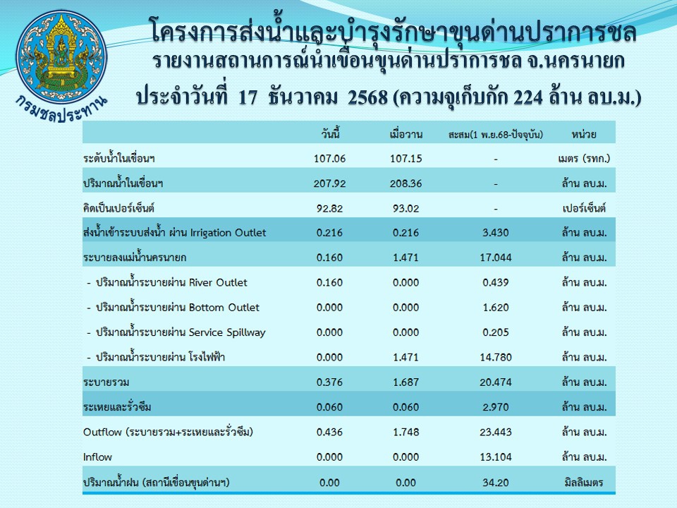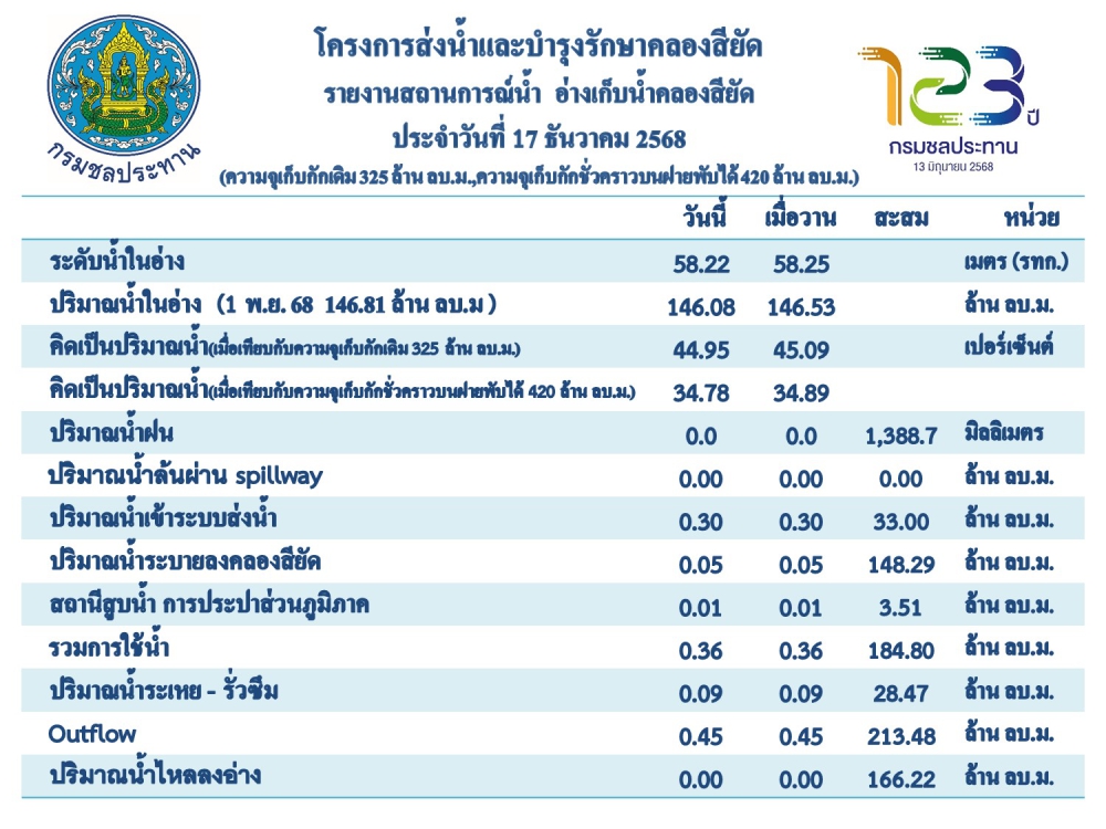 รายงานสถานการณ์น้ำประจำวันที่ 17 ธันวาคม 2568
