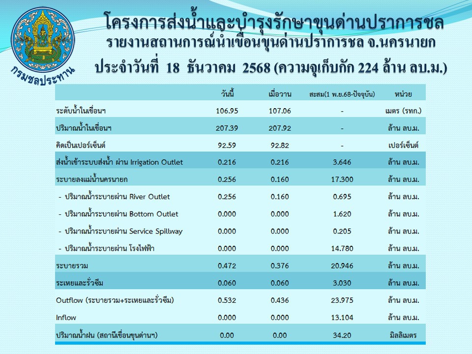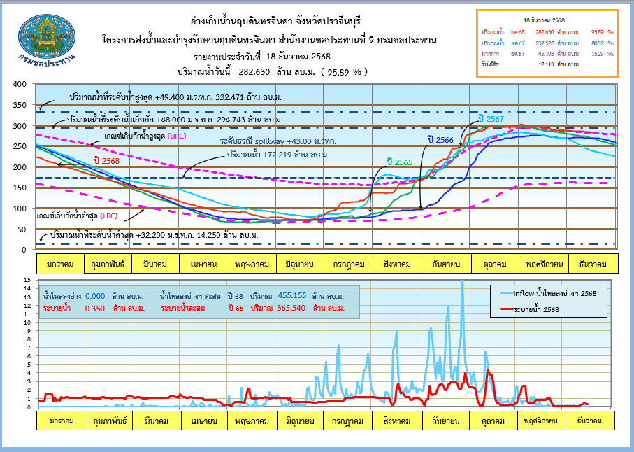รายงานสถานการณ์น้ำประจำวันที่ 18 ธันวาคม 2568
