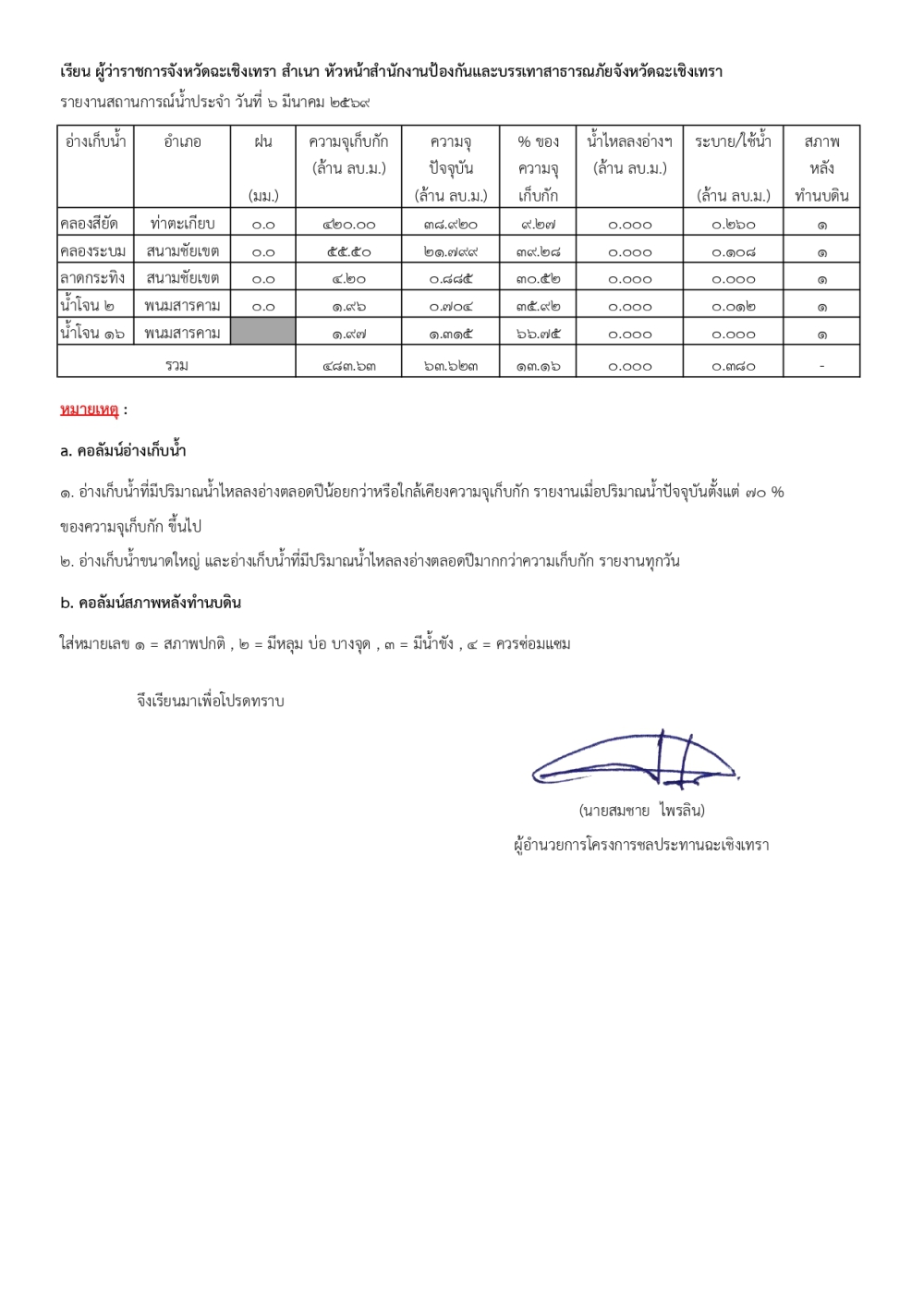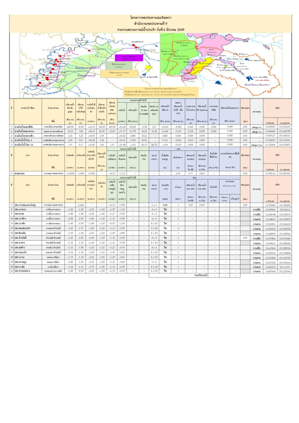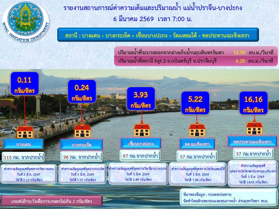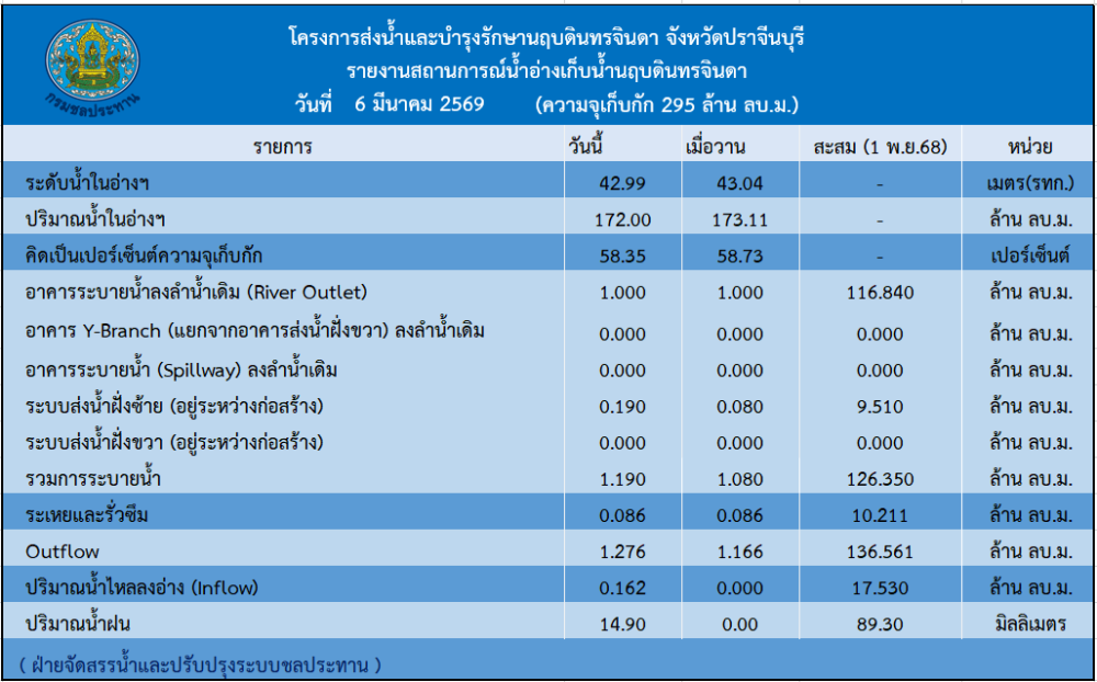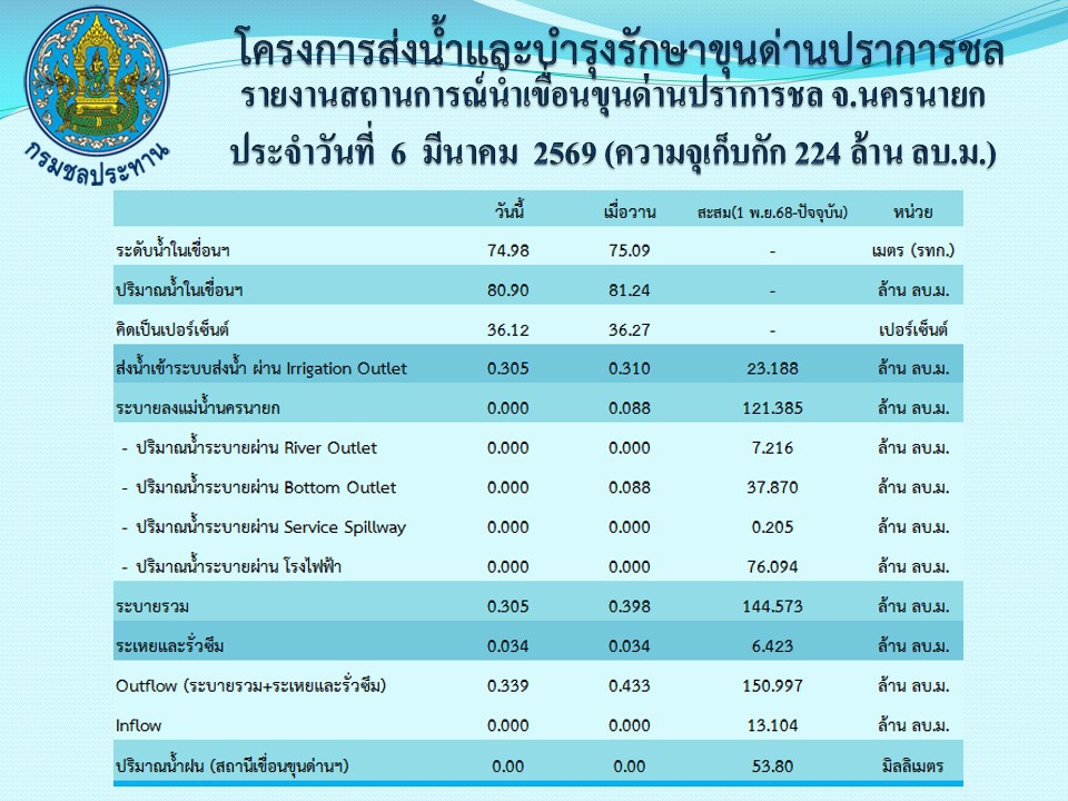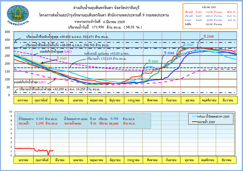 รายงานสถานการณ์น้ำประจำวันที่ 6 มีนาคม 2569