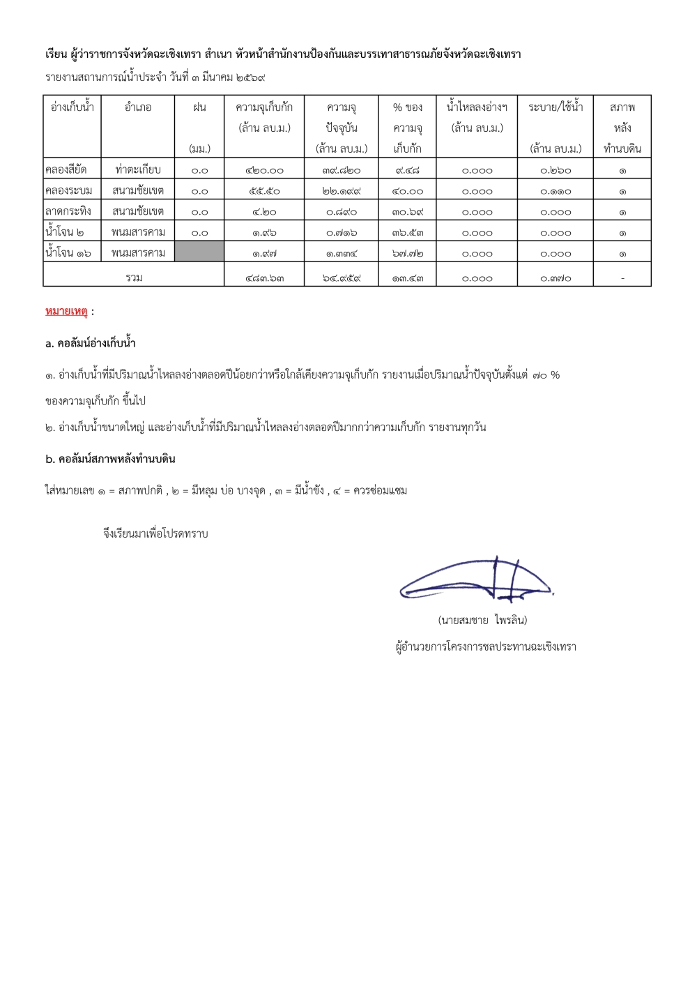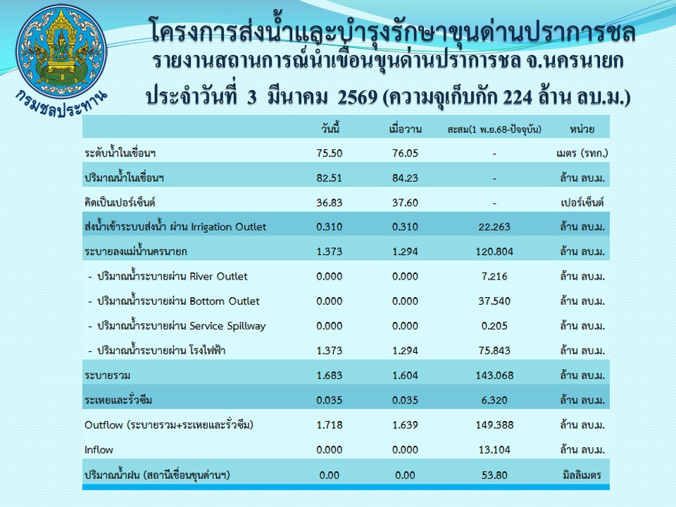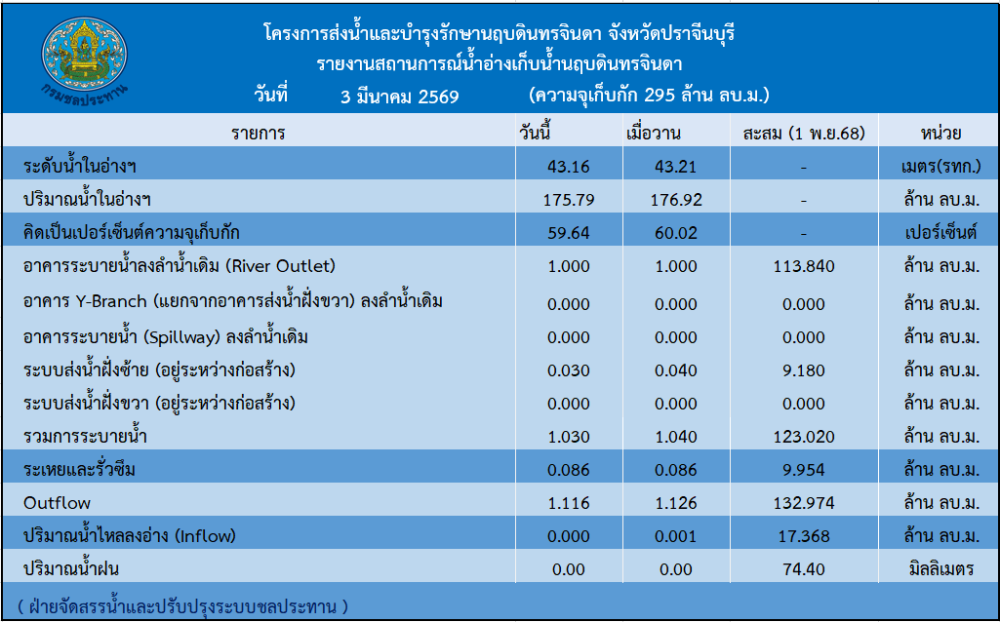 รายงานสถานการณ์น้ำประจำวันที่ 3 มีนาคม 2569
