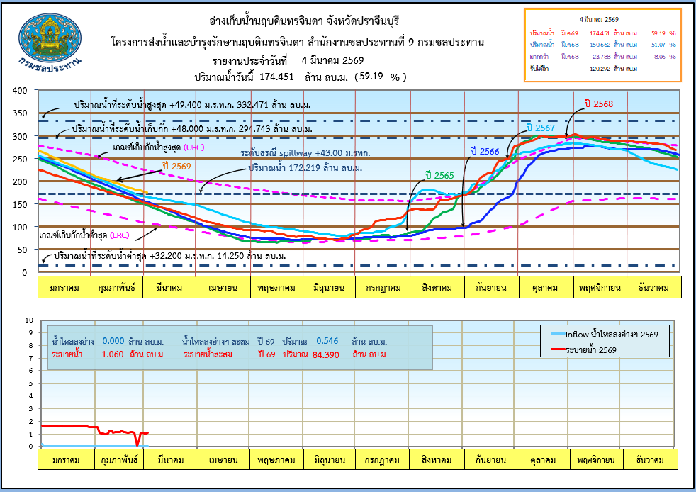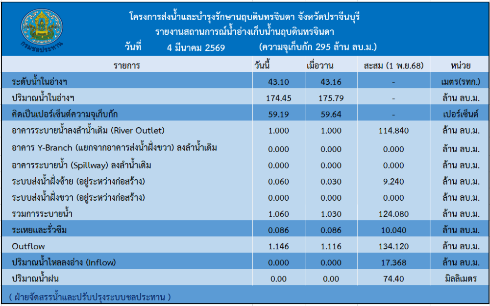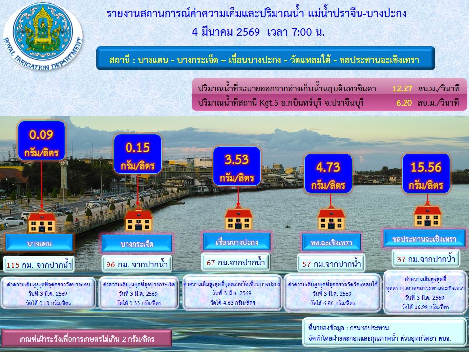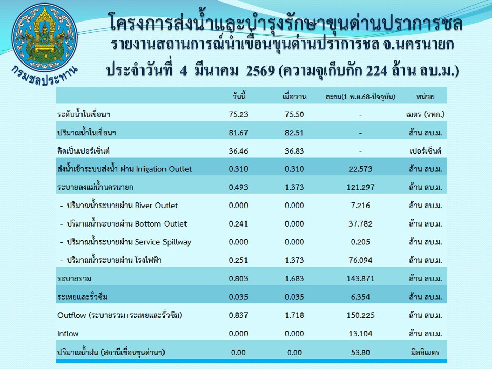 รายงานสถานการณ์น้ำประจำวันที่ 4 มีนาคม 2569