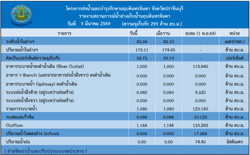 รายงานสถานการณ์น้ำประจำวันที่ 5 มีนาคม 2569