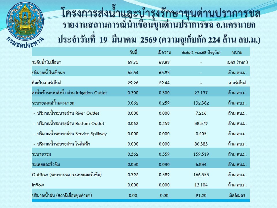 รายงานสถานการณ์น้ำประจำวันที่ 19 มีนาคม 2569