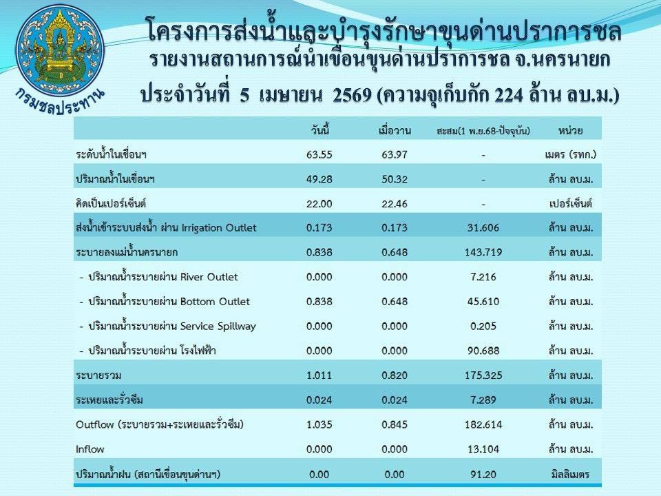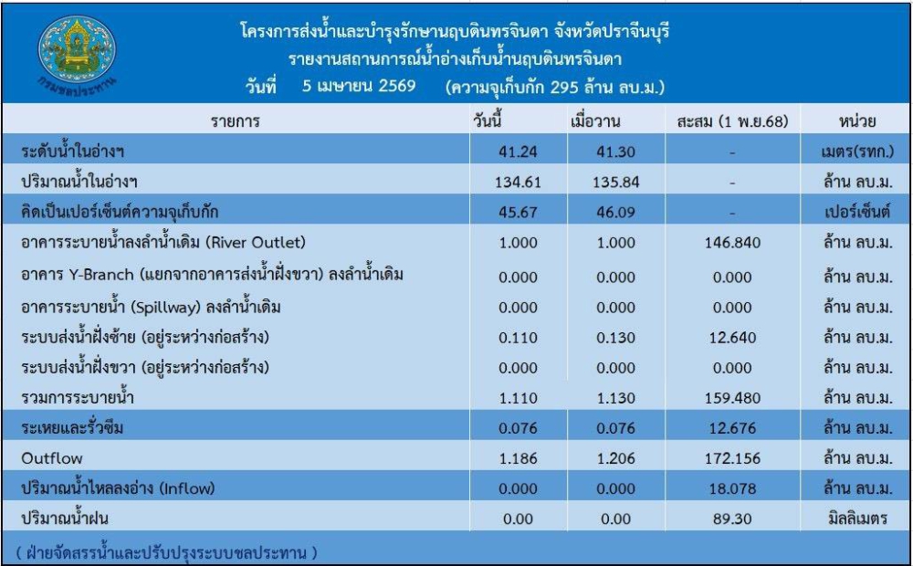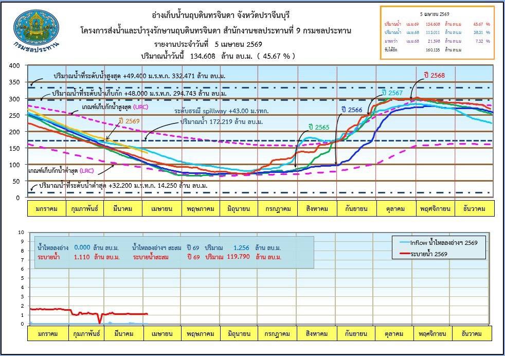 รายงานสถานการณ์น้ำประจำวันที่ 5 เมษายน 2569