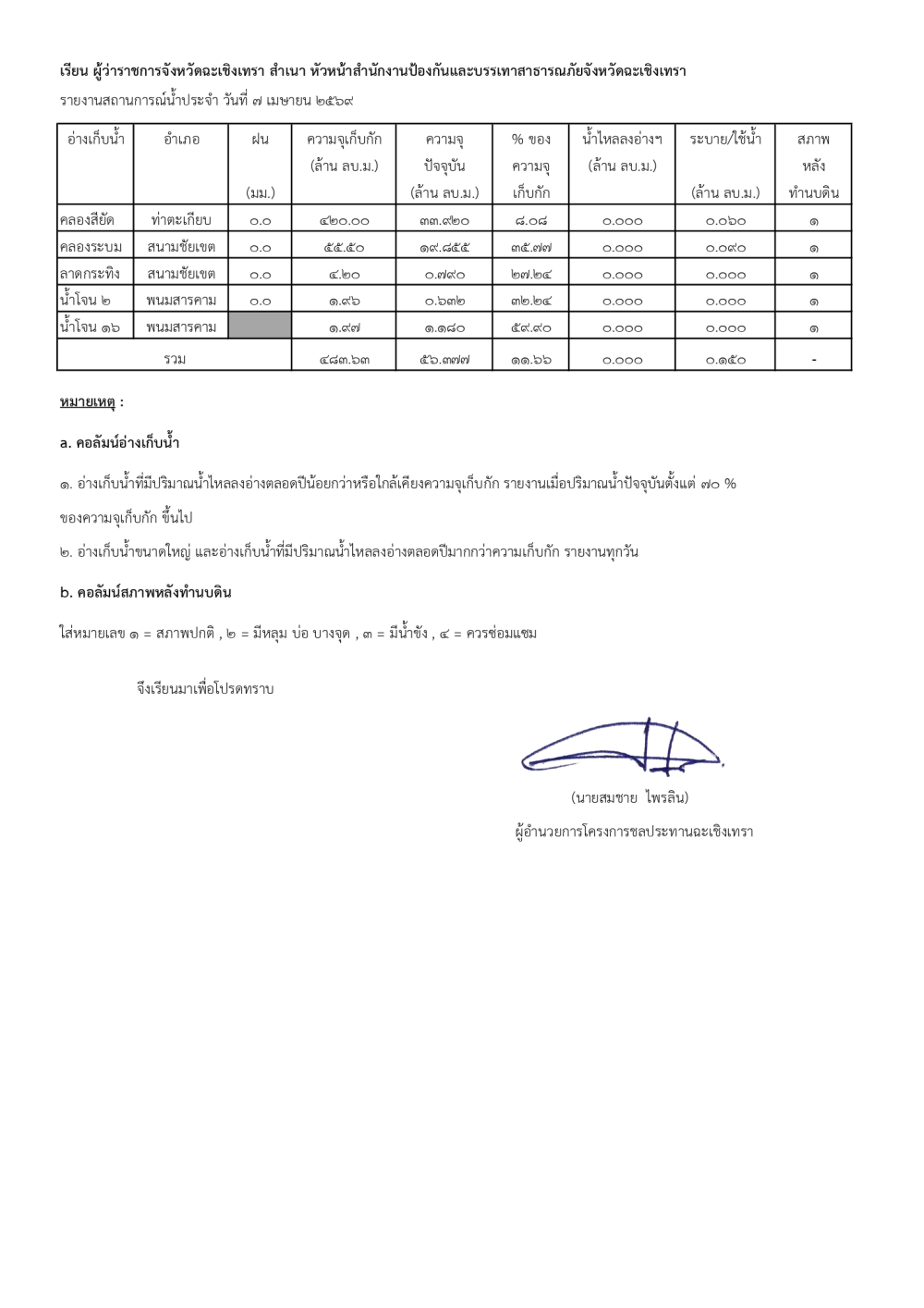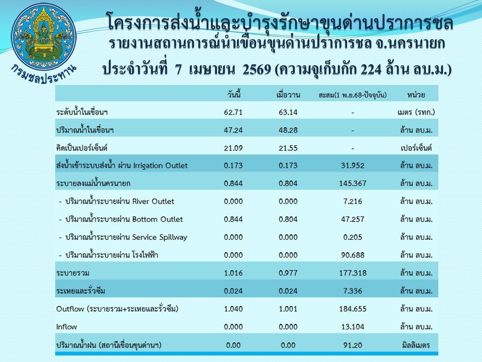 รายงานสถานการณ์น้ำประจำวันที่ 7 เมษายน 2569