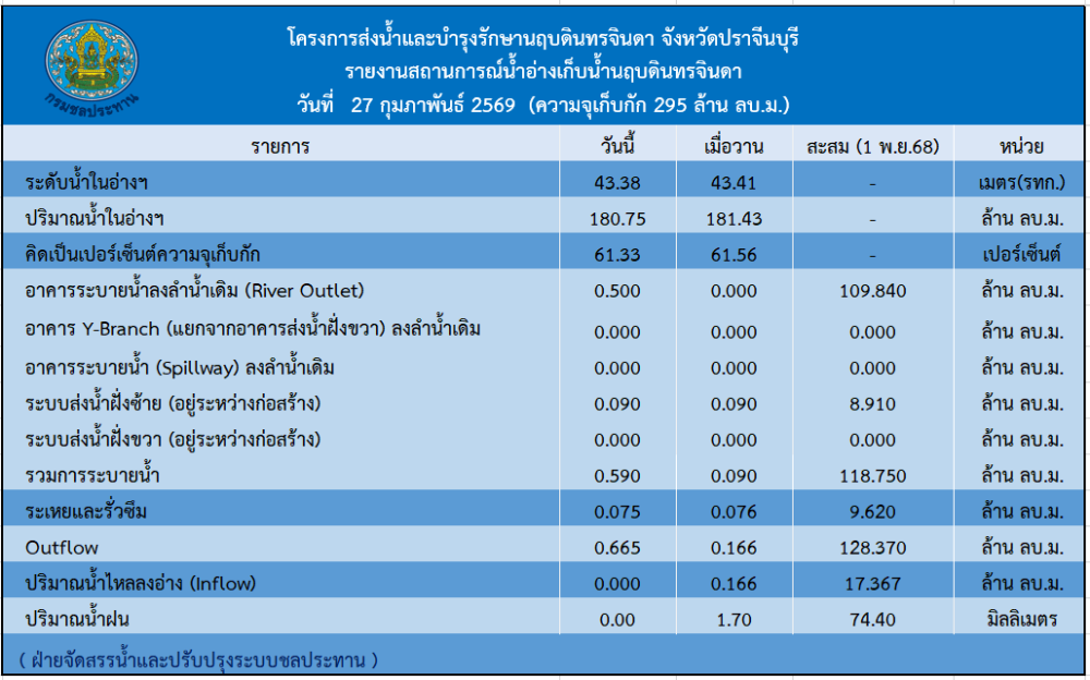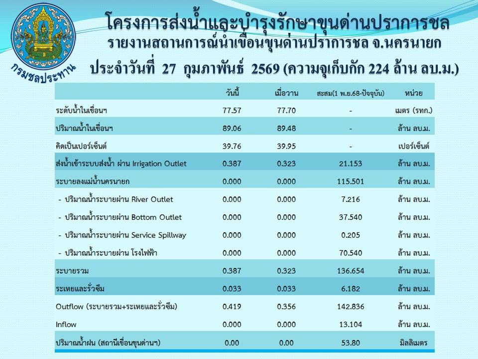 รายงานสถานการณ์น้ำประจำวันที่ 27 กุมภาพันธ์ 2569
