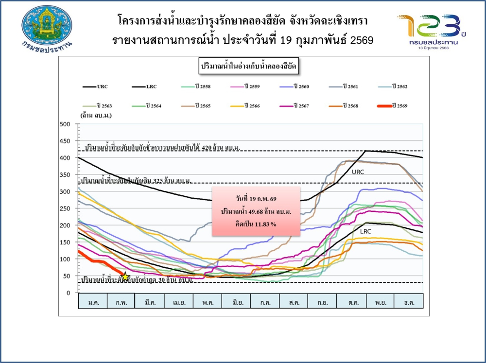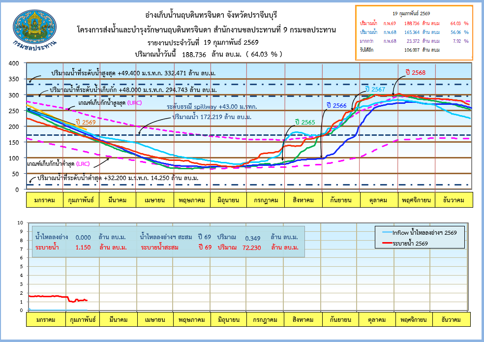 รายงานสถานการณ์น้ำประจำวันที่ 19 กุมภาพันธ์ 2569