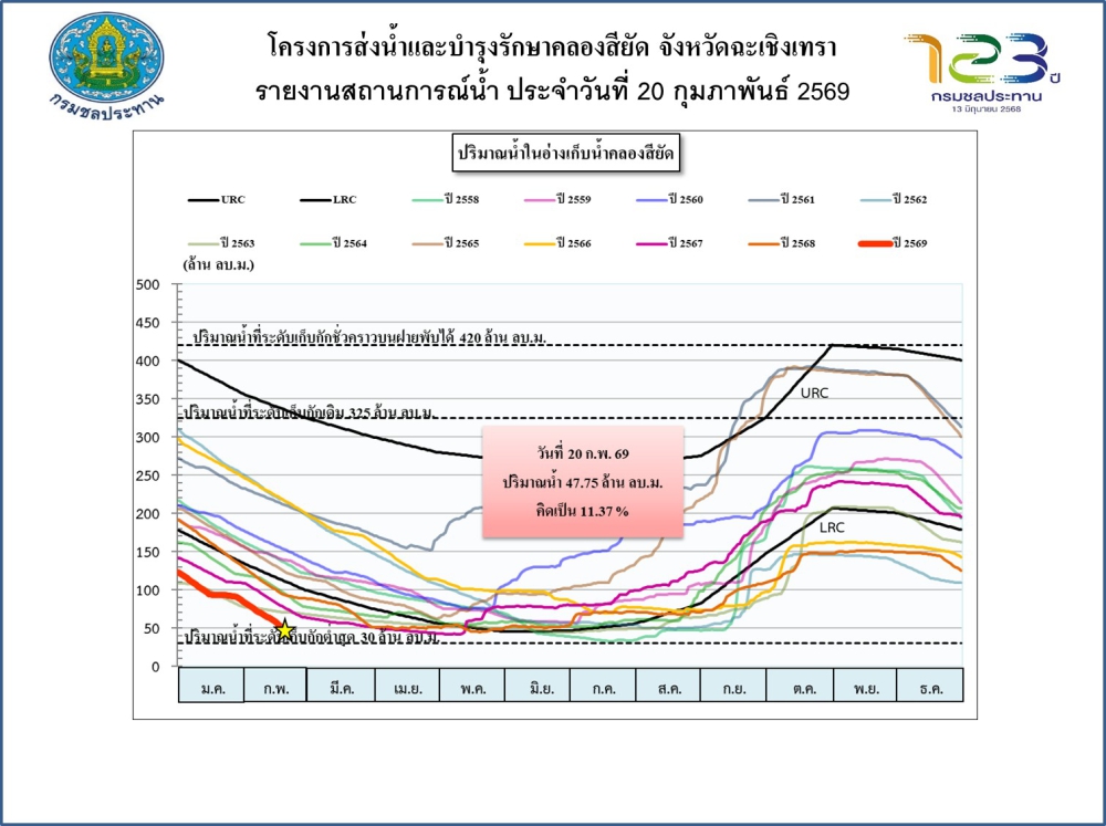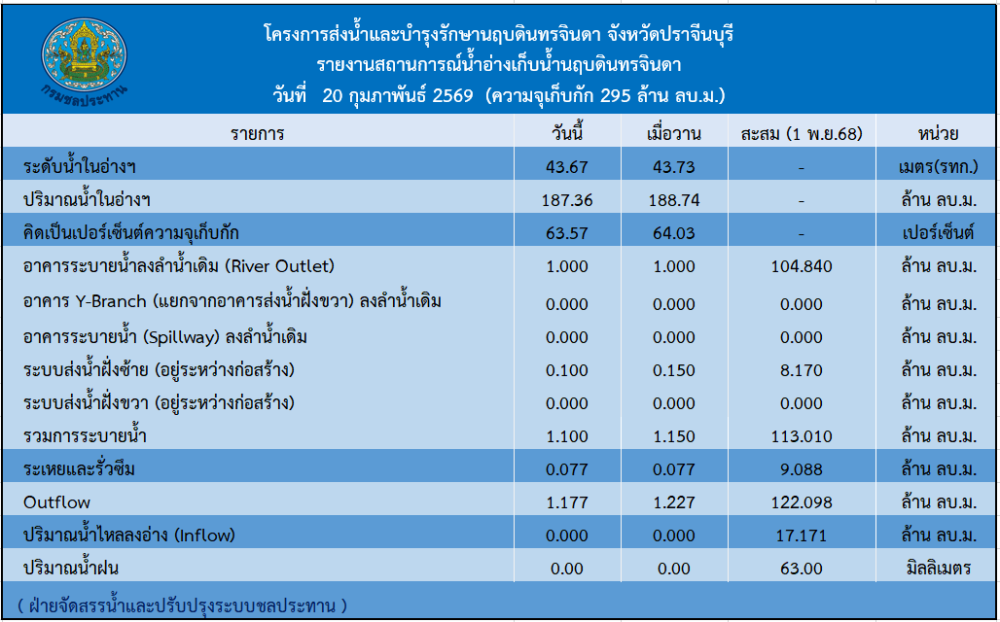 รายงานสถานการณ์น้ำประจำวันที่ 20 กุมภาพันธ์ 2569