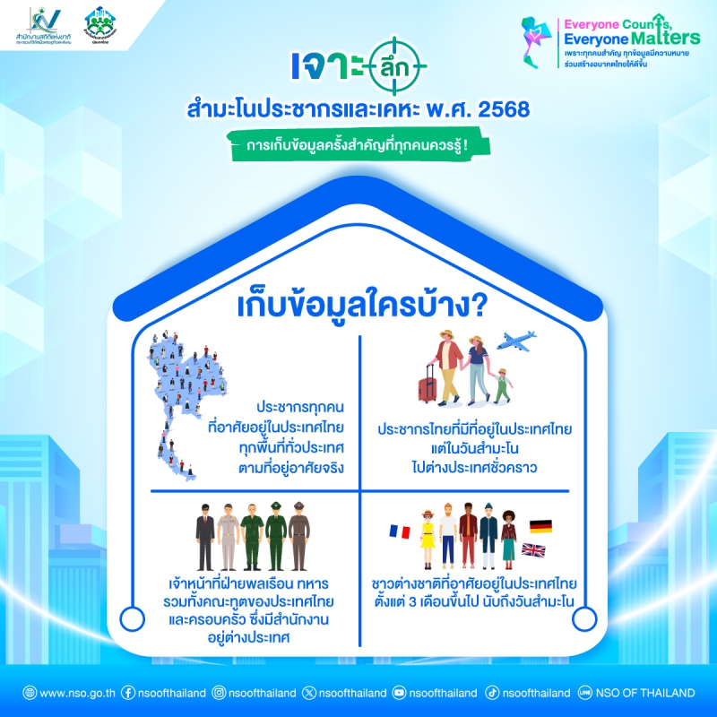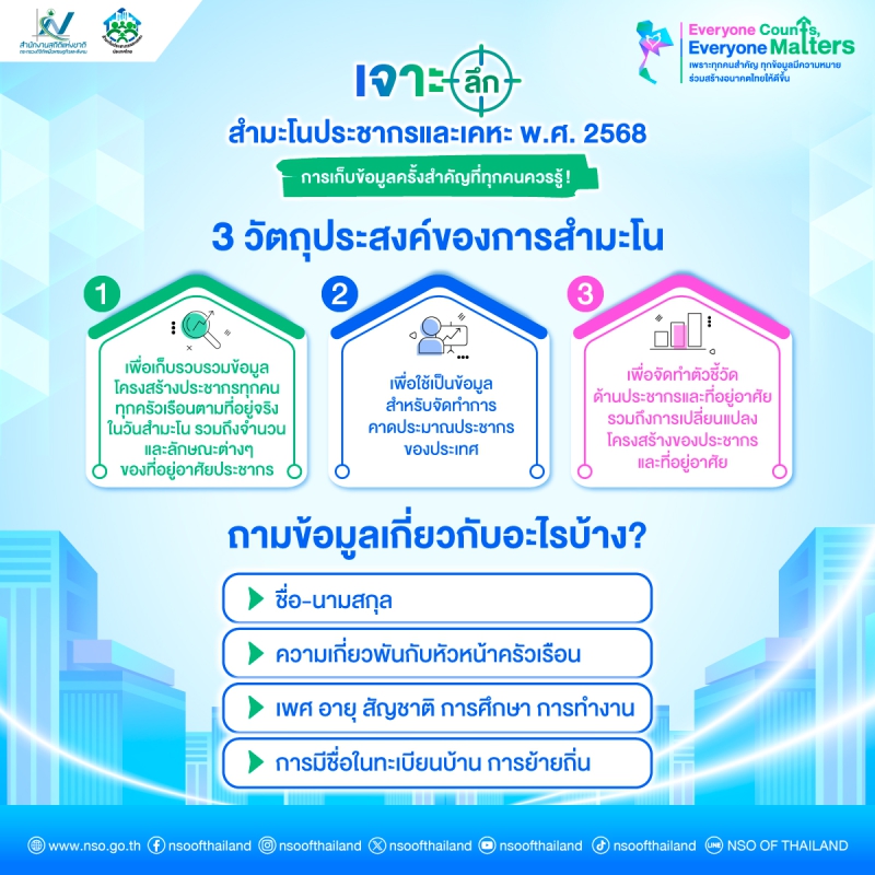 คุณเคยสงสัยหรือไม่ ว่ารัฐเอาข้อมูลจากไหนมาใช้ใการพัฒนาประเทศ มาเจาะลึกและค้นหาคำตอบพร้อมกัน ใน สำมะโนประชากรและเคหะ พ.ศ. 2568 การเก็บข้อมูลครั้งสำคัญที่ทุกคนควรรู้
