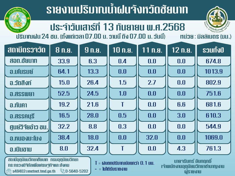 พยากรณ์อากาศ ประจำวันที่ 13 กันยายน 2568