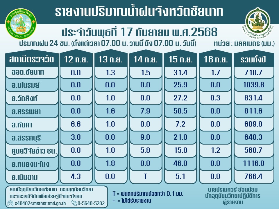 พยากรณ์อากาศ ประจำวันที่ 17 กันยายน 2568
