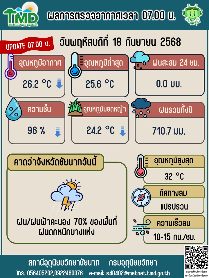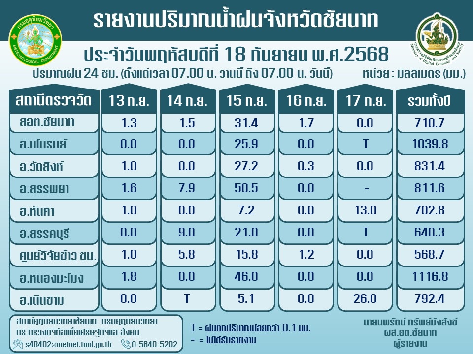 พยากรณ์อากาศ ประจำวันที่ 18 กันยายน 2568