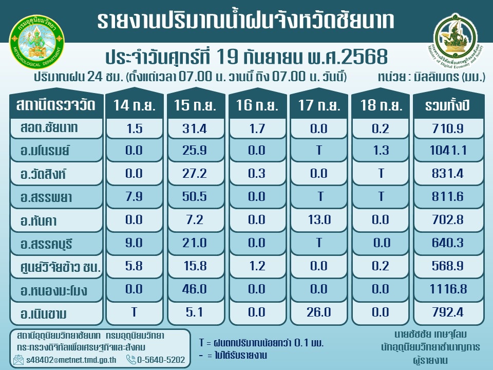 พยากรณ์อากาศ ประจำวันที่ 19 กันยายน 2568