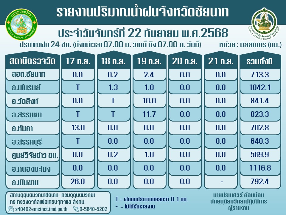 พยากรณ์อากาศ ประจำวันที่ 22 กันยายน 2568