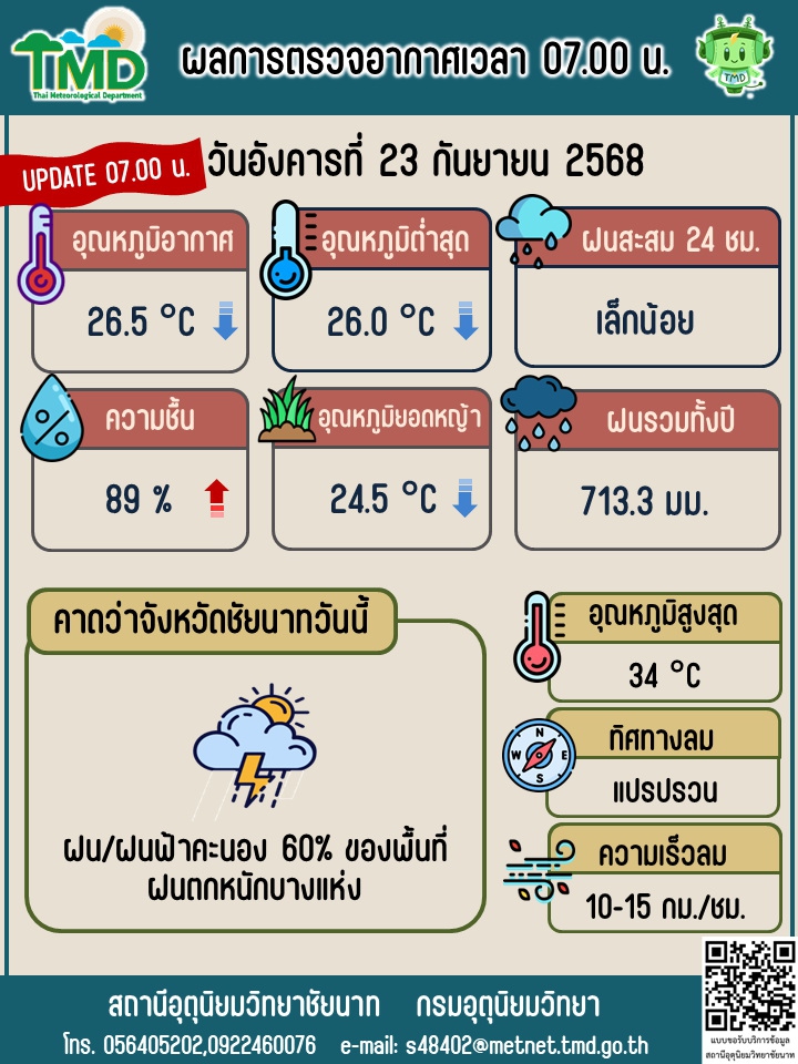 พยากรณ์อากาศ ประจำวันที่ 23 กันยายน 2568