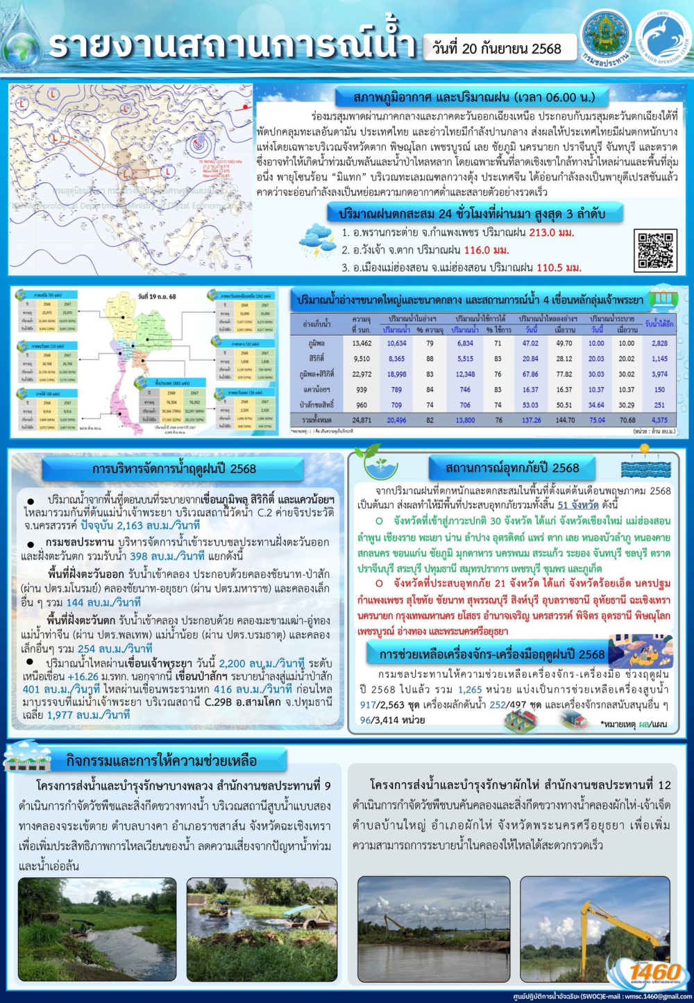 รายงานสถานการณ์น้ำเขื่อนเจ้าพระยา วันที่ 20 กันยายน 2568