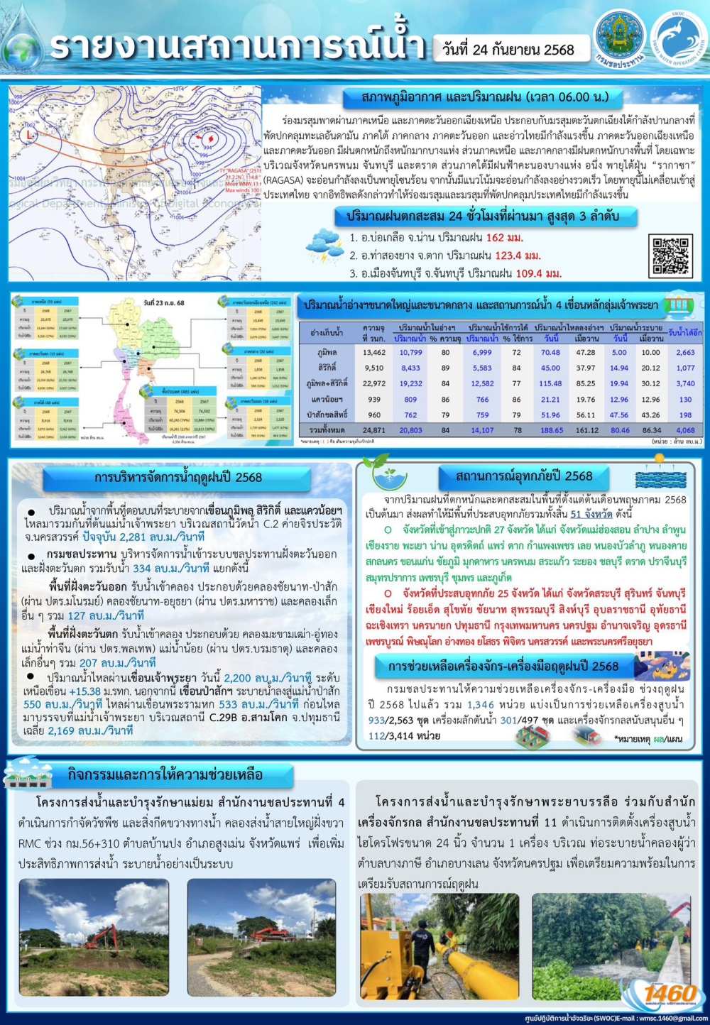 รายงานสถานการณ์น้ำเขื่อนเจ้าพระยา วันที่ 24 กันยายน 2568