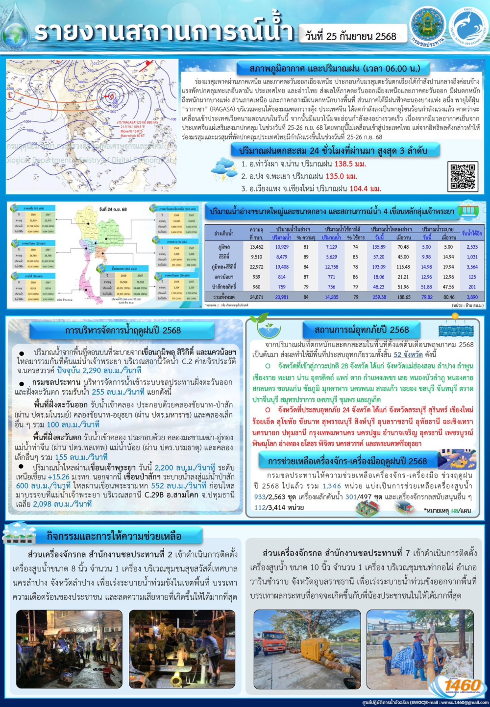 รายงานสถานการณ์น้ำเขื่อนเจ้าพระยา วันที่ 25 กันยายน 2568
