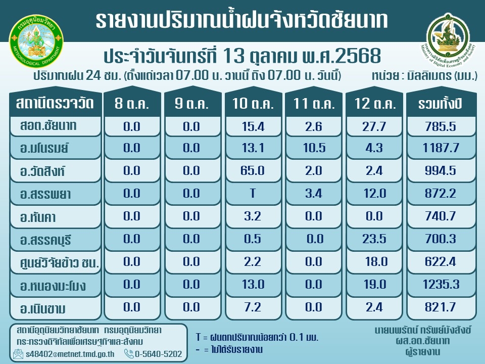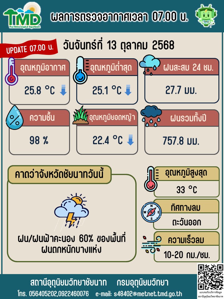 พยากรณ์อากาศ ประจำวันที่ 13 ตุลาคม 2568