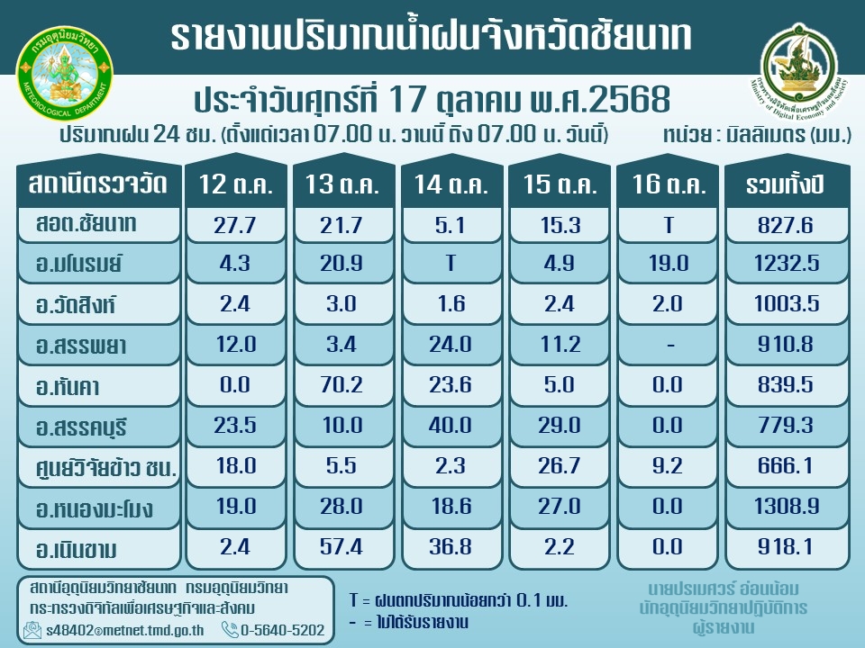 พยากรณ์อากาศ ประจำวันที่ 17 ตุลาคม 2568
