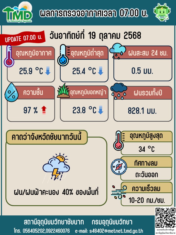 พยากรณ์อากาศ ประจำวันที่ 19 ตุลาคม 2568
