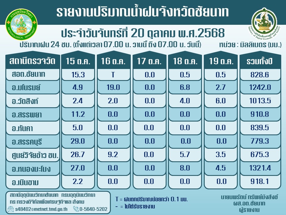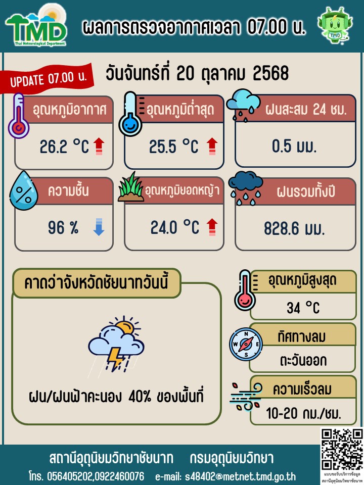 พยากรณ์อากาศ ประจำวันที่ 20 ตุลาคม 2568