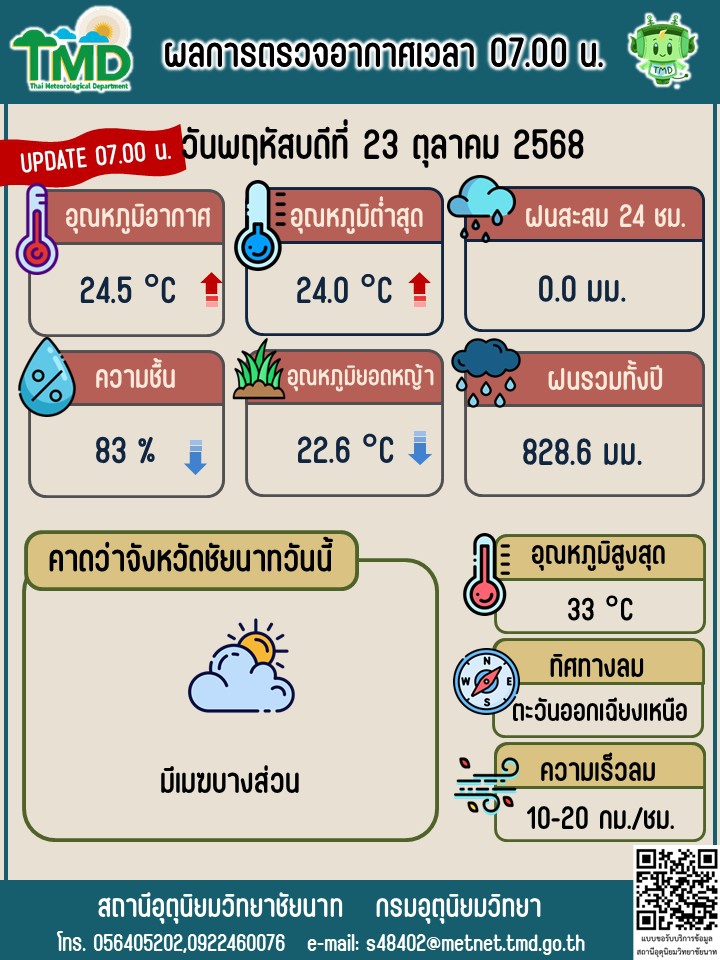 พยากรณ์อากาศ ประจำวันที่ 23 ตุลาคม 2568