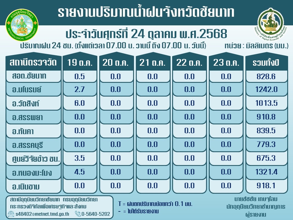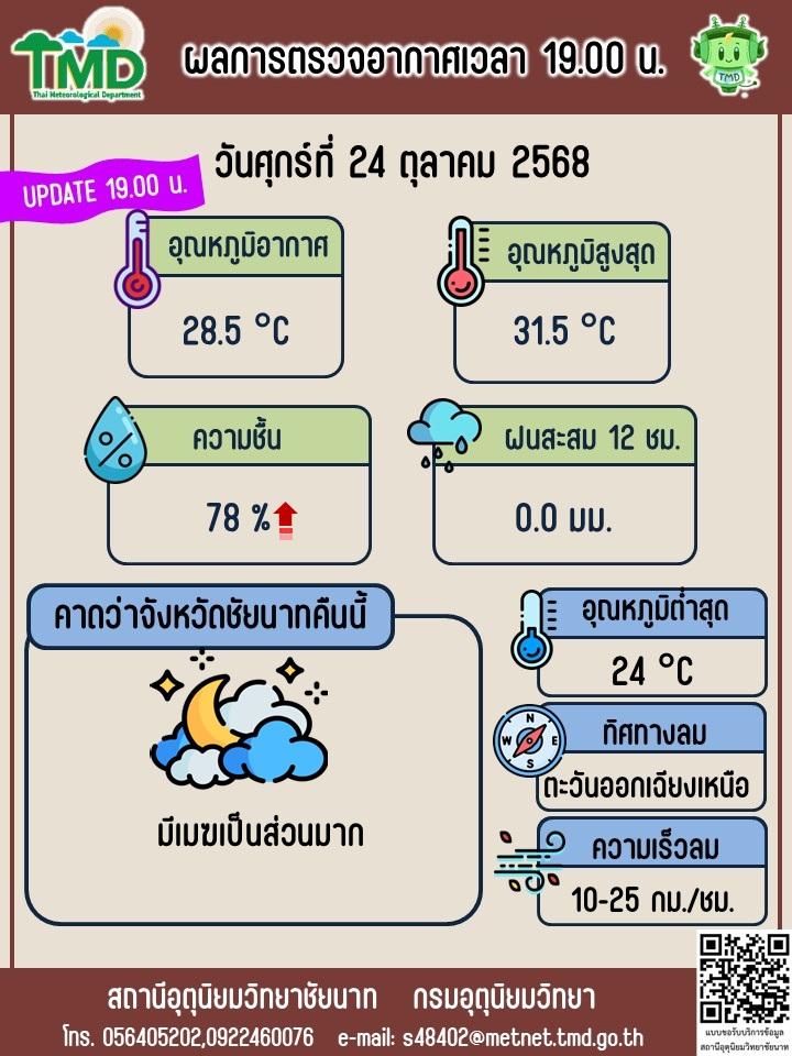 พยากรณ์อากาศ ประจำวันที่ 24 ตุลาคม 2568