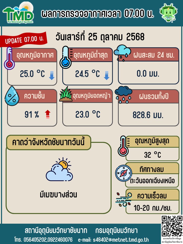 พยากรณ์อากาศ ประจำวันที่ 25 ตุลาคม 2568