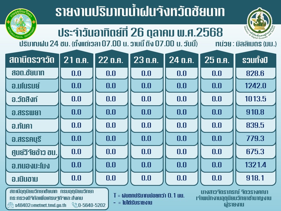 พยากรณ์อากาศ ประจำวันที่ 26 ตุลาคม 2568