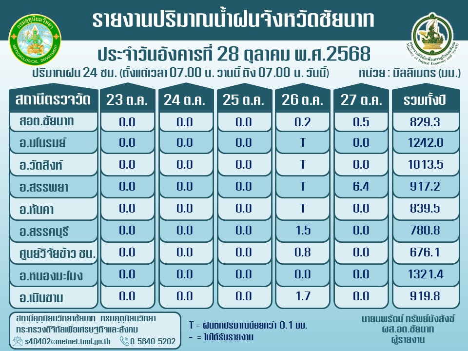 พยากรณ์อากาศ ประจำวันที่ 28 ตุลาคม 2568