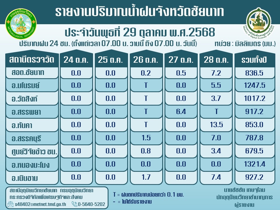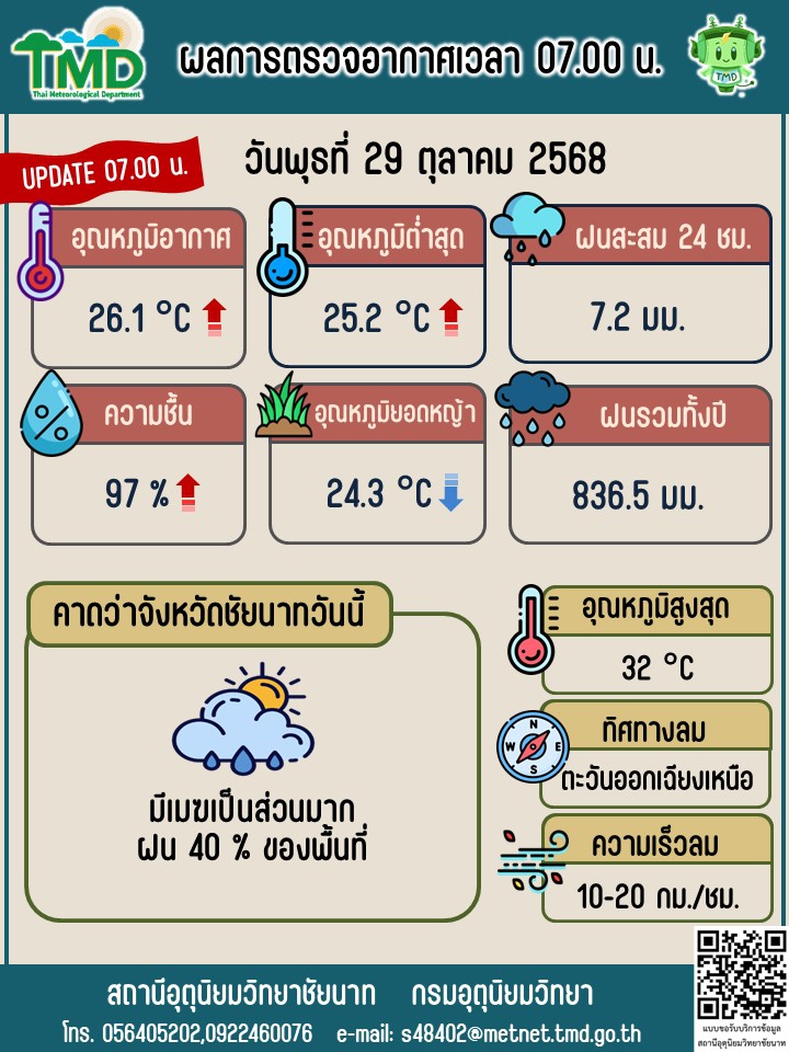 พยากรณ์อากาศ ประจำวันที่ 29 ตุลาคม 2568