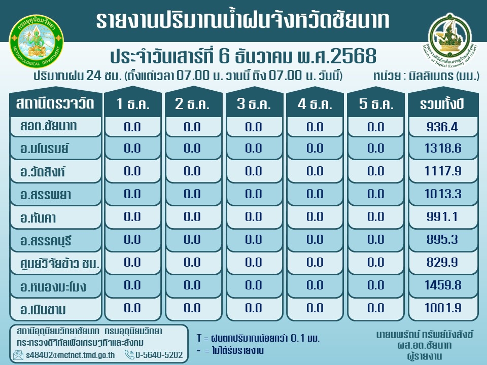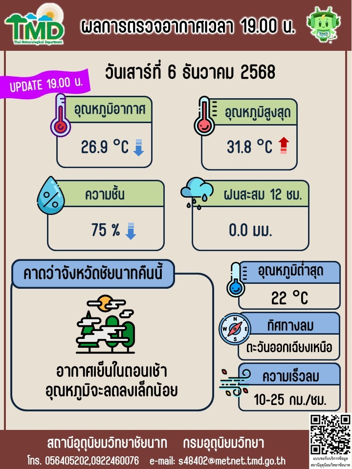 พยากรณ์อากาศ ประจำวันที่ 6 ธันวาคม 2568