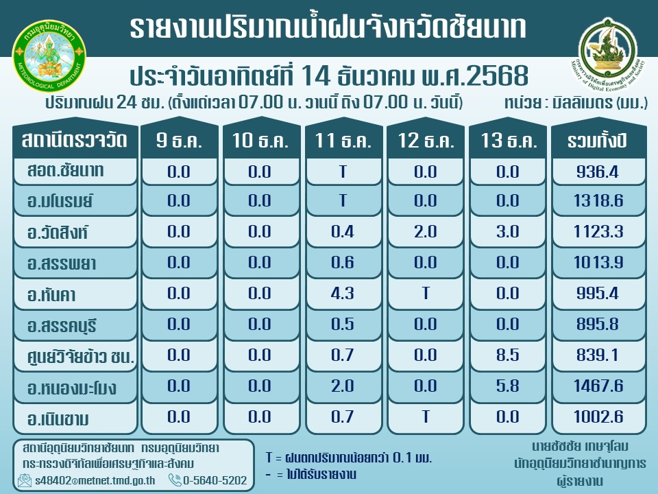 พยากรณ์อากาศ ประจำวันที่ 14 ธันวาคม 2568