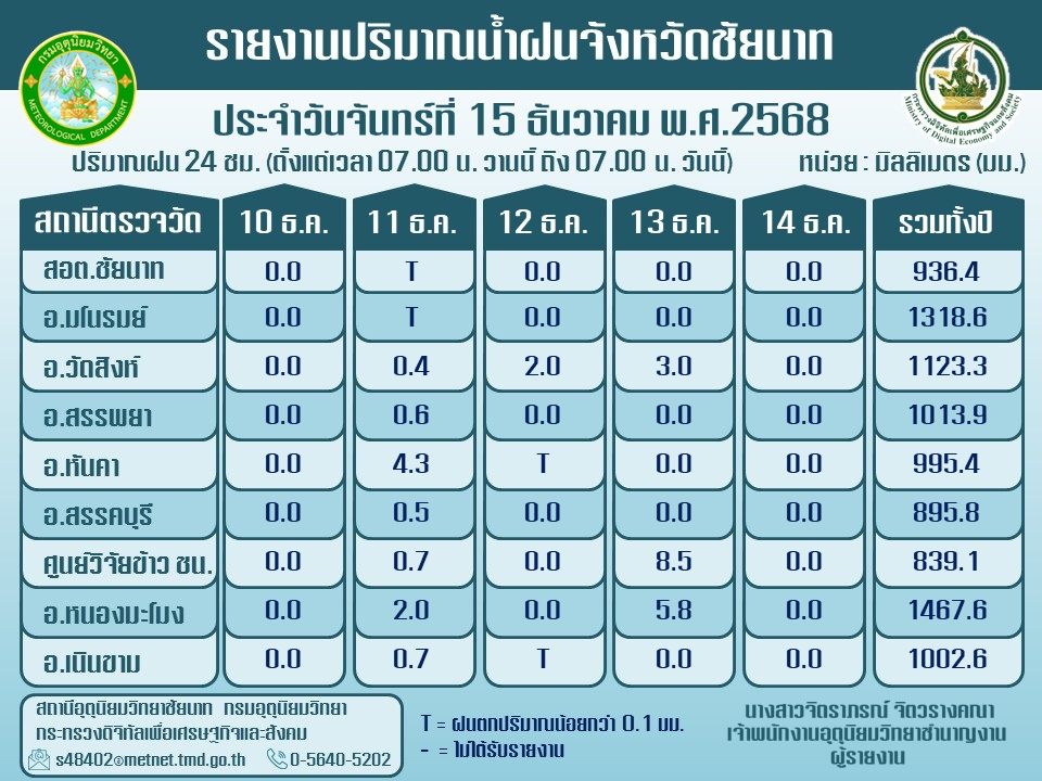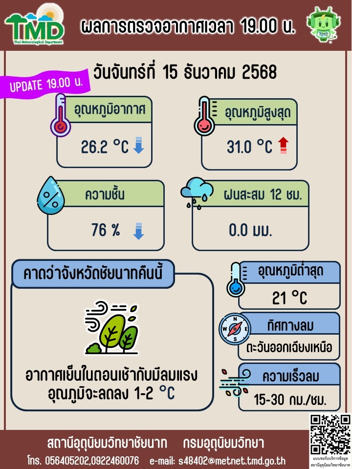 พยากรณ์อากาศ ประจำวันที่ 15 ธันวาคม 2568