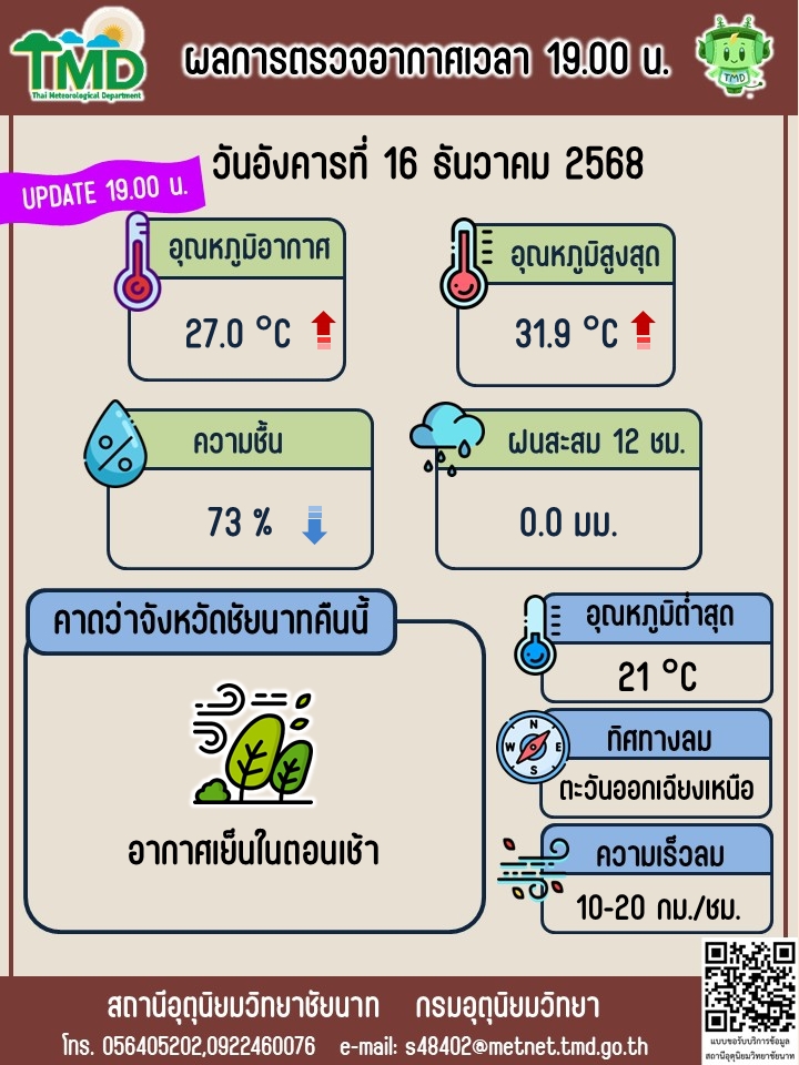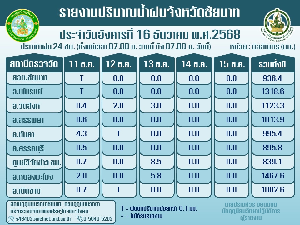 พยากรณ์อากาศ ประจำวันที่ 16 ธันวาคม 2568