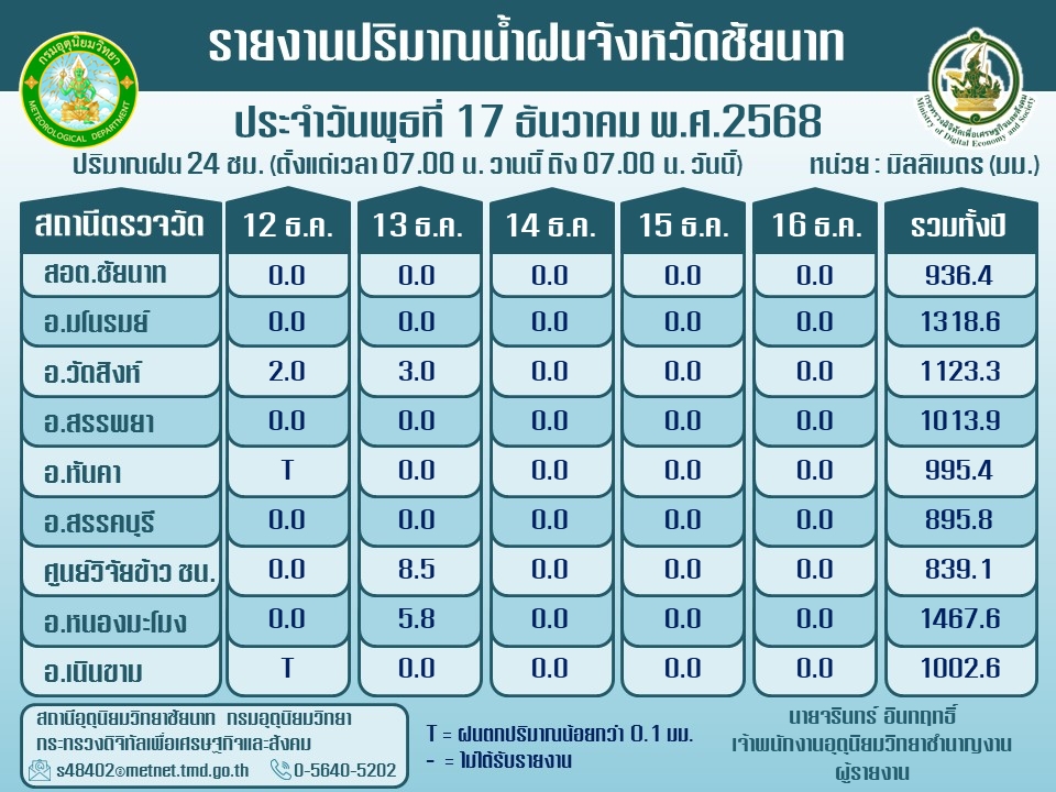 พยากรณ์อากาศ ประจำวันที่ 17 ธันวาคม 2568