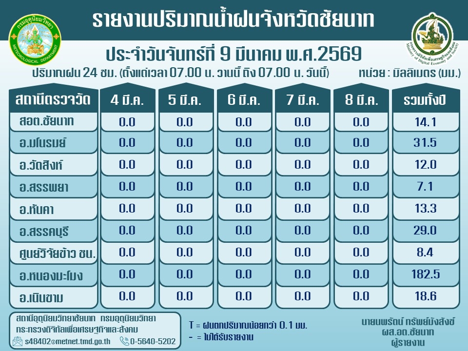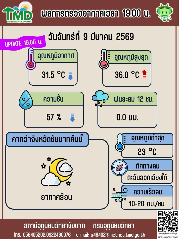 พยากรณ์อากาศ ประจำวันที่ 9 มีนาคม 2569