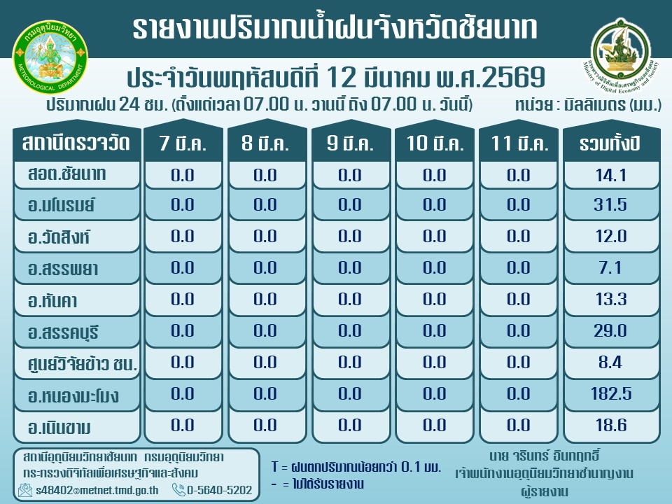 พยากรณ์อากาศ ประจำวันที่ 12 มีนาคม 2569
