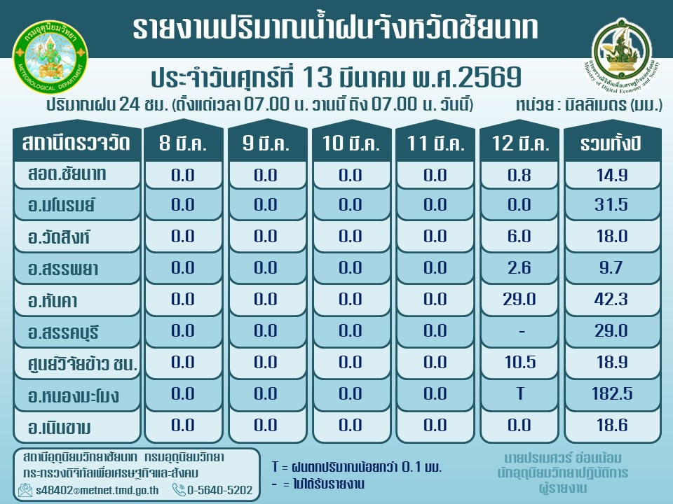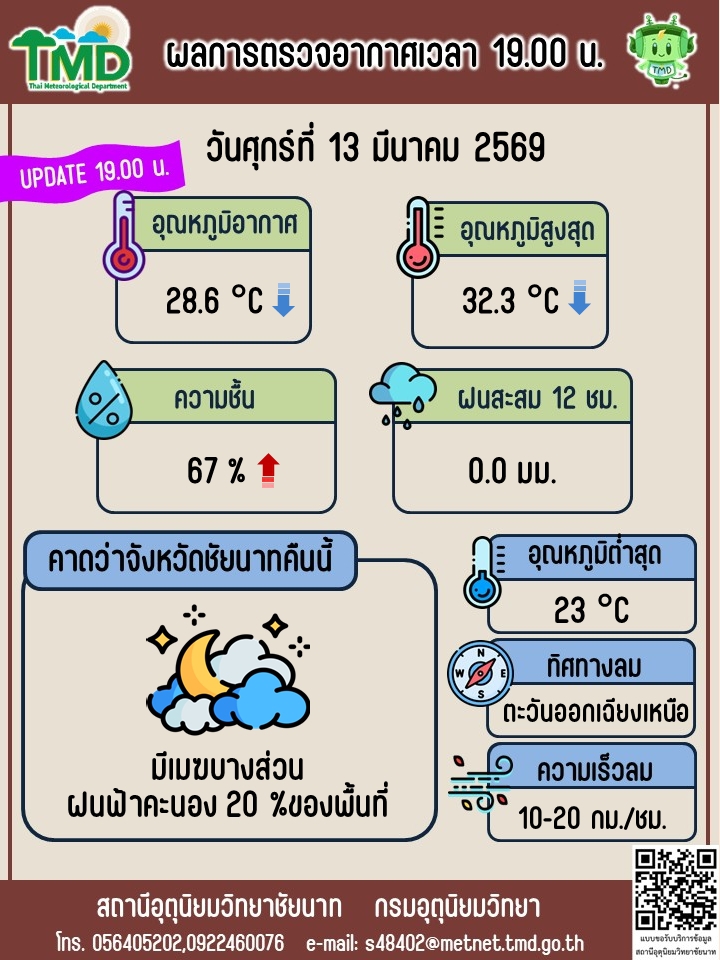 พยากรณ์อากาศ ประจำวันที่ 13 มีนาคม 2569