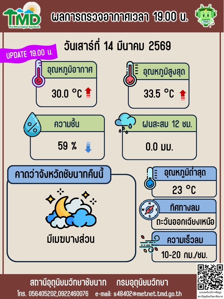 พยากรณ์อากาศ ประจำวันที่ 14 มีนาคม 2569