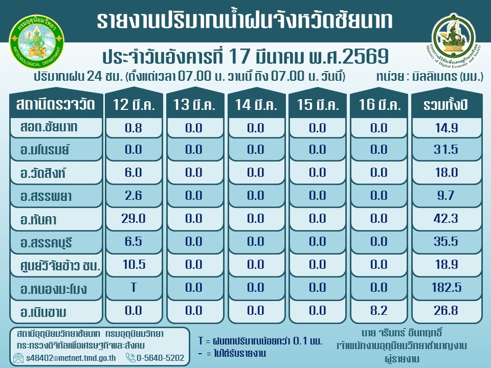 พยากรณ์อากาศ ประจำวันที่ 17 มีนาคม 2569