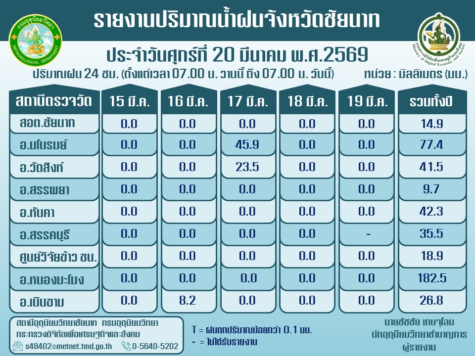 พยากรณ์อากาศ ประจำวันที่ 20 มีนาคม 2569