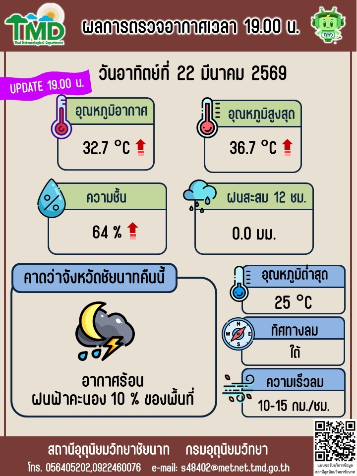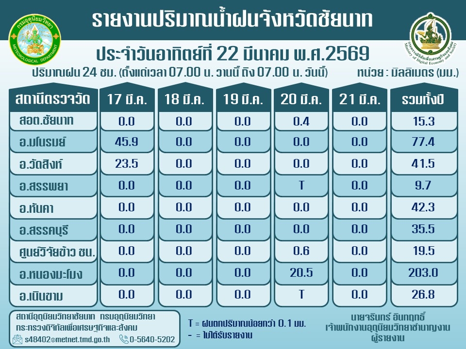 พยากรณ์อากาศ ประจำวันที่ 22 มีนาคม 2569