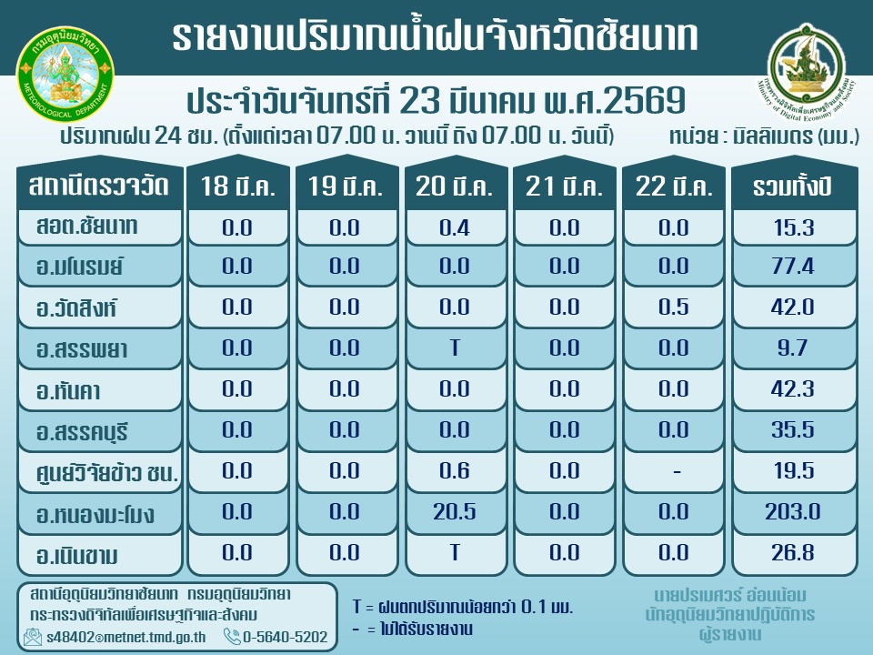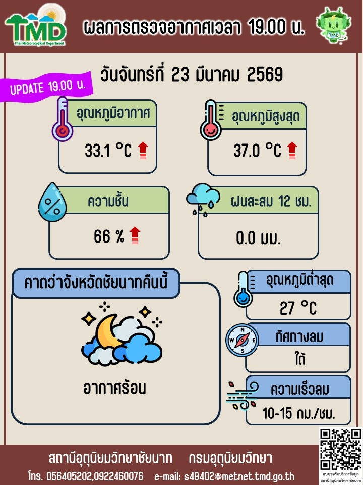 พยากรณ์อากาศ ประจำวันที่ 23 มีนาคม 2569