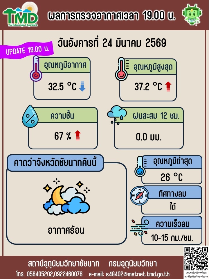 พยากรณ์อากาศ ประจำวันที่ 24 มีนาคม 2569