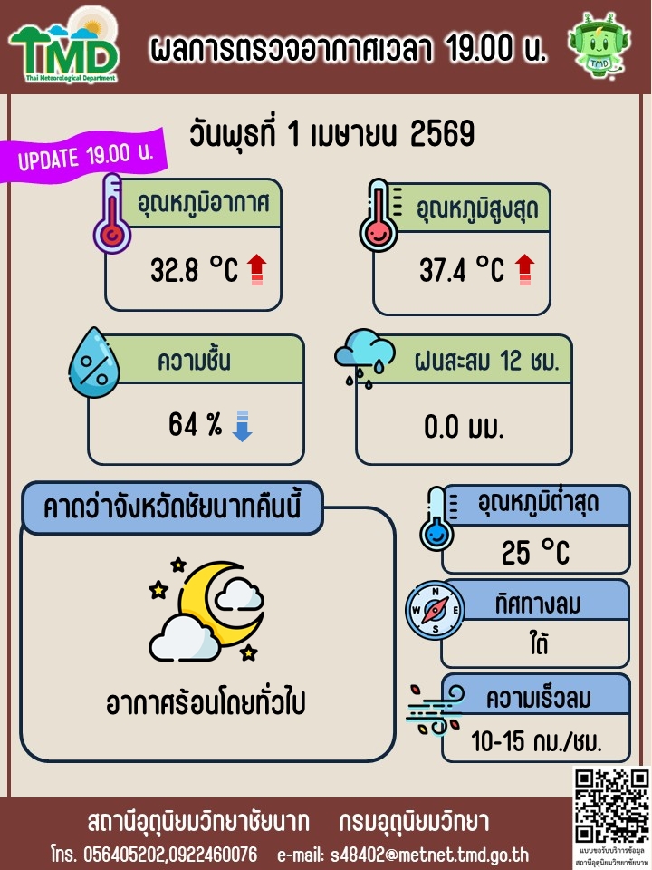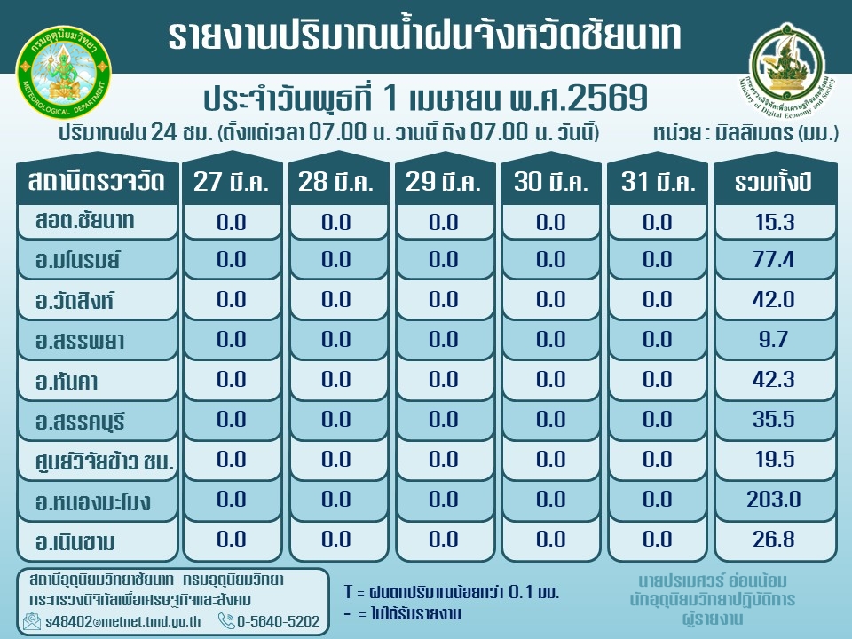 พยากรณ์อากาศ ประจำวันที่ 1 เมษายน 2569