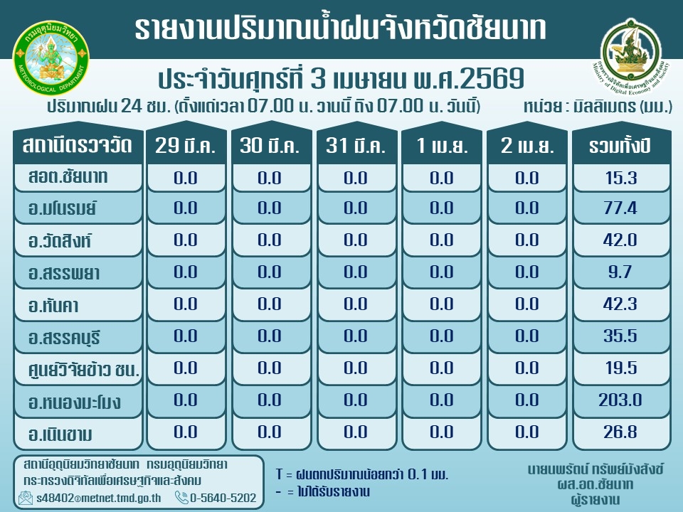 พยากรณ์อากาศ ประจำวันที่ 3 เมษายน 2569