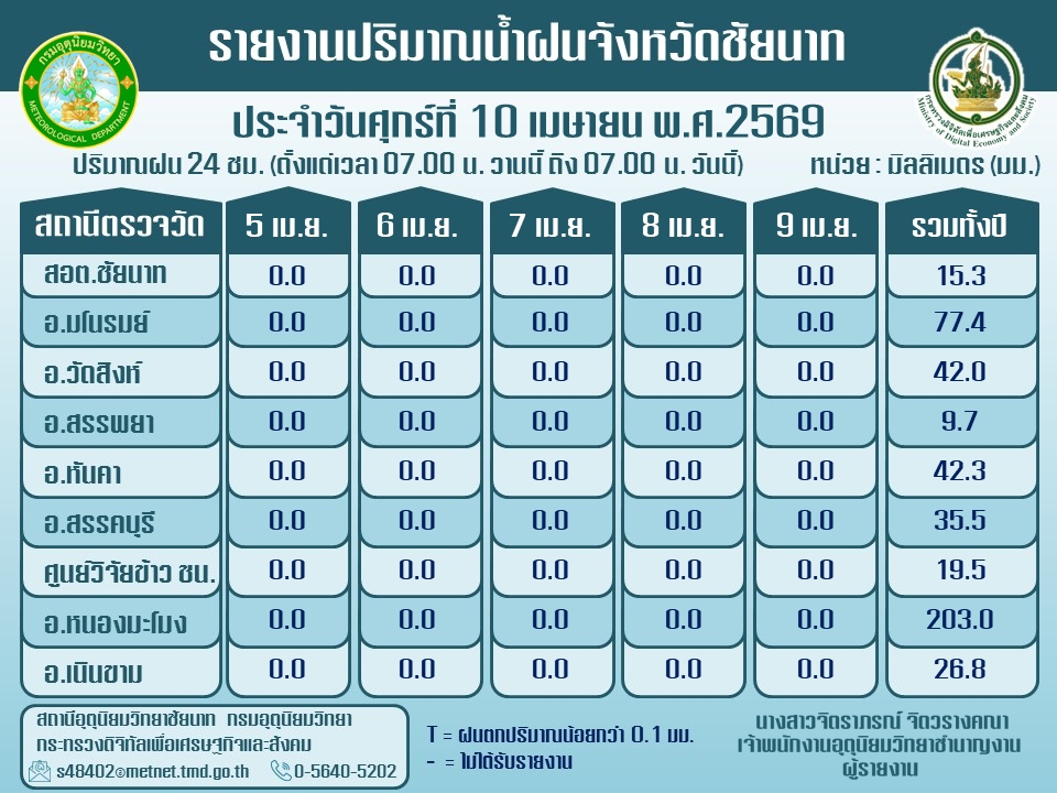 พยากรณ์อากาศ ประจำวันที่ 10 เมษายน 2569